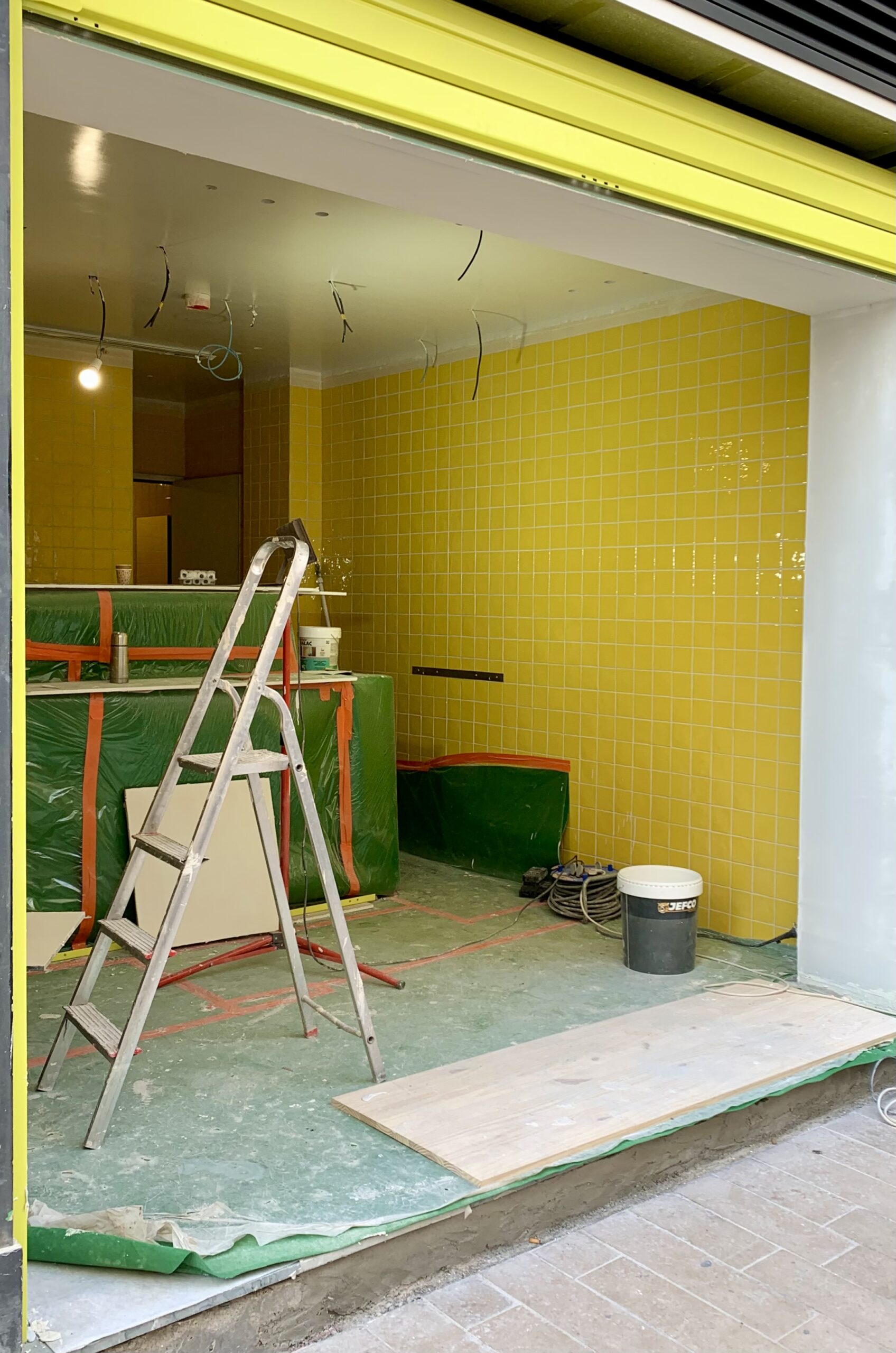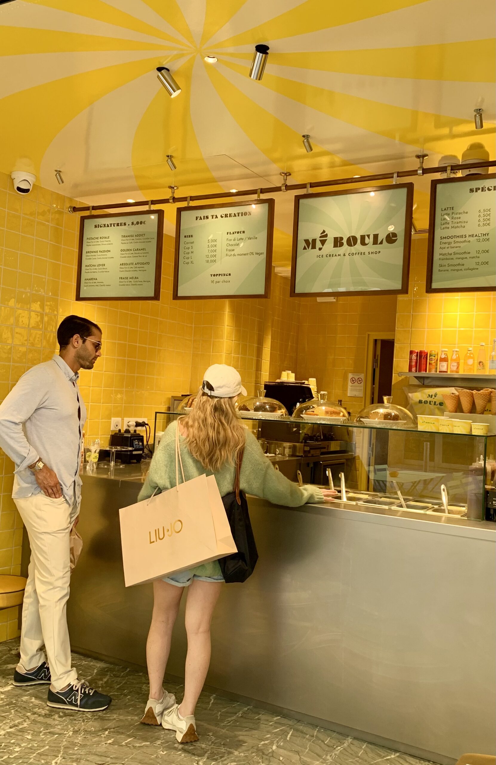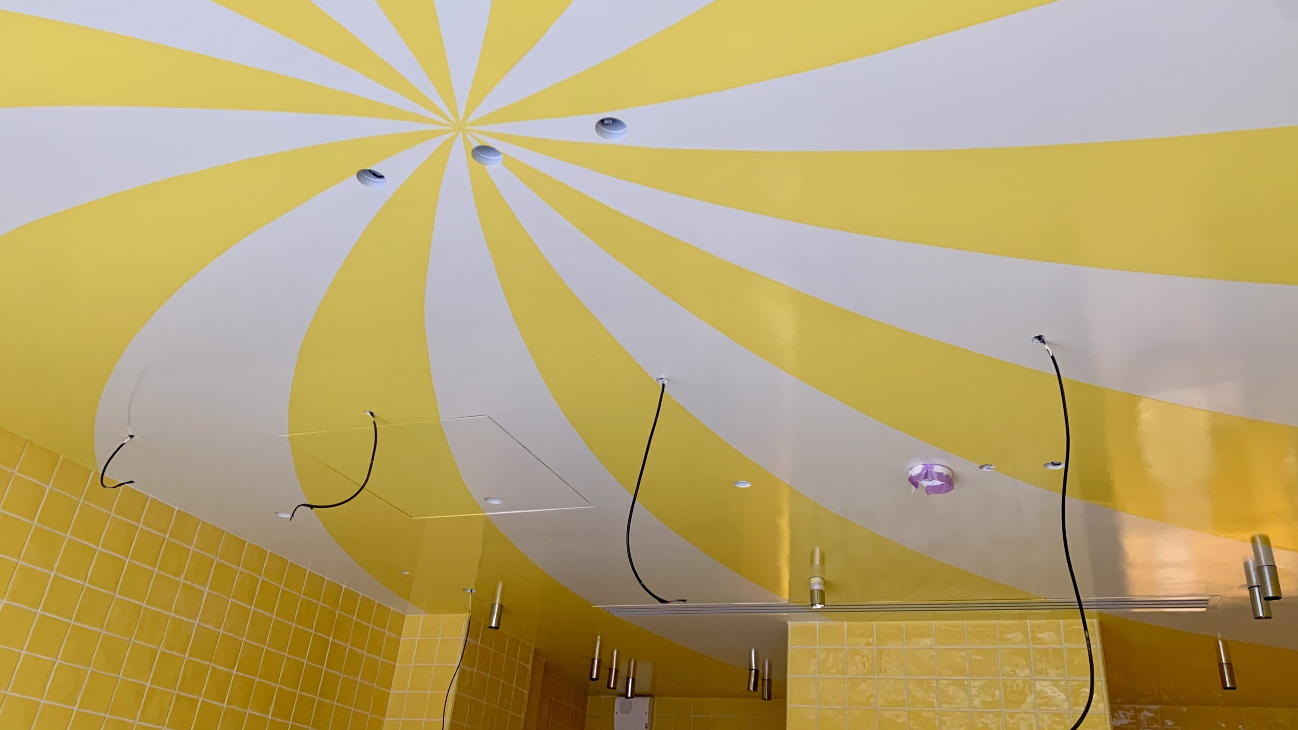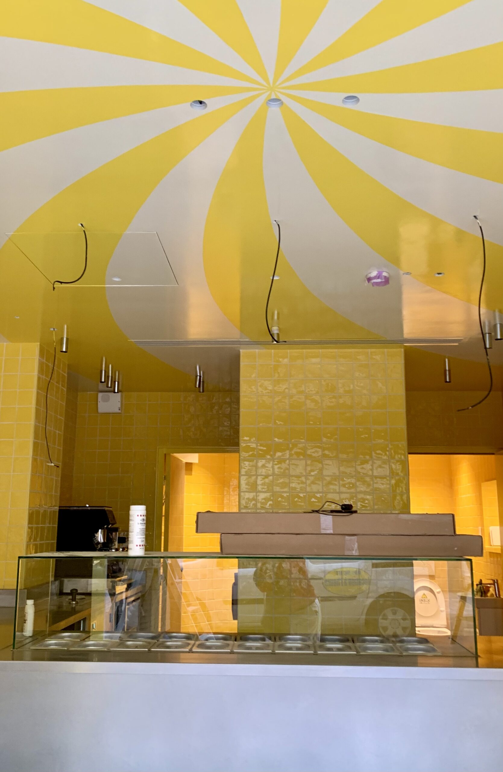 Projet de réalisation d’un plafond peint avec un design spécifique envoyé par l’architecte et à reproduire à l’échelle pour un nouveau glacier de la chaine My Boule.